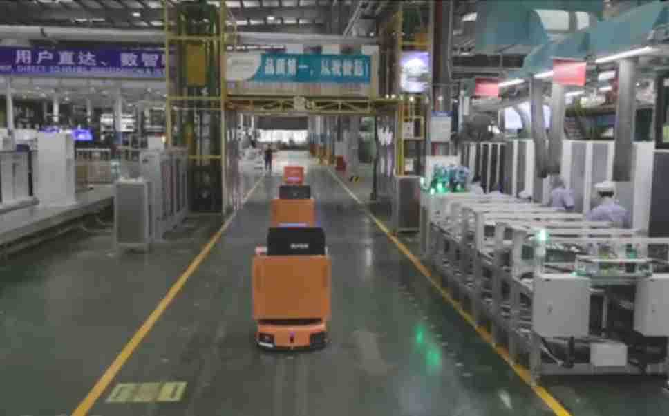 为车载冰箱物流配送打造的智能解决方案,,,,包含产中物流通过潜伏举升AMR搬运至线边,,产后成品物流智能仓储,,,,流程包含产中物流智能齐套入库,,线边安灯叫料AMR智能配送至线边,,,,成品入库、、、、出库,,,通过无人堆高车机器人,,智能仓储管理替代人工作业管理,,,,实现更高存储、、、、更高效率、、、、更具柔性化的解决方案。。